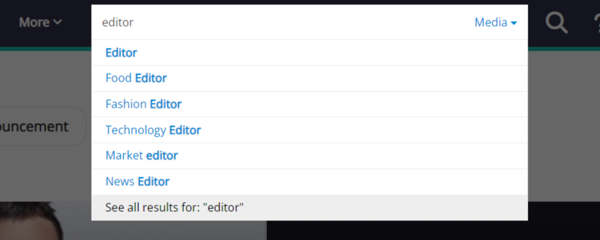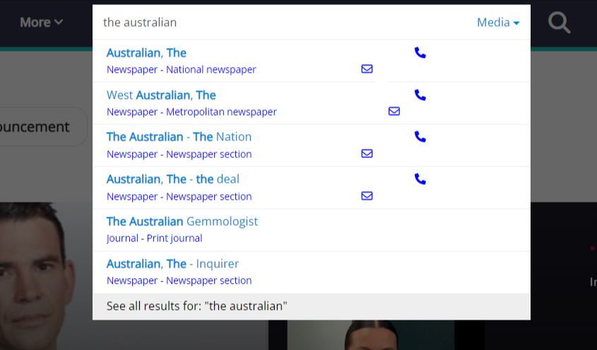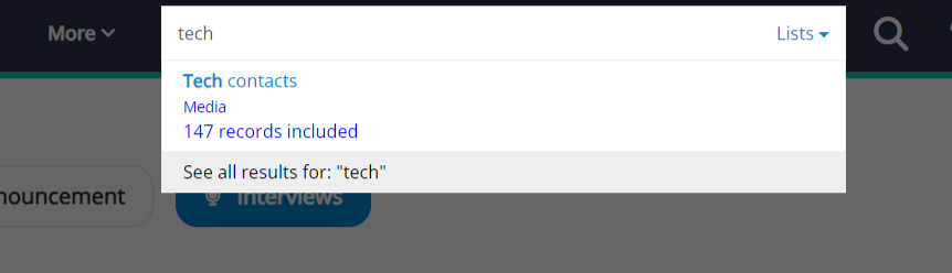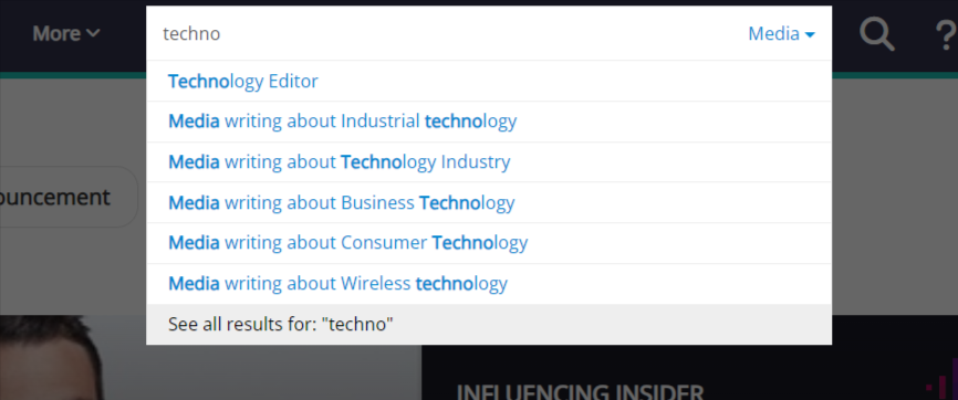 This is the default search option. You can use this option to search for people, outlets & publications, media that cover a certain topic and even people with specific job titles (like editors, for example). Note: press enter to see all search results.