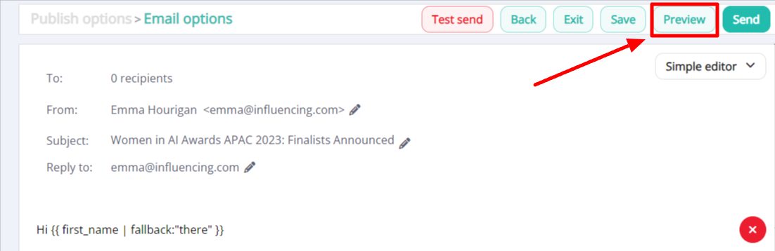 You can always click on 'Email Preview' if you want to see how your release is looking. Click on 'Click & Save' to go back to the editing mode.