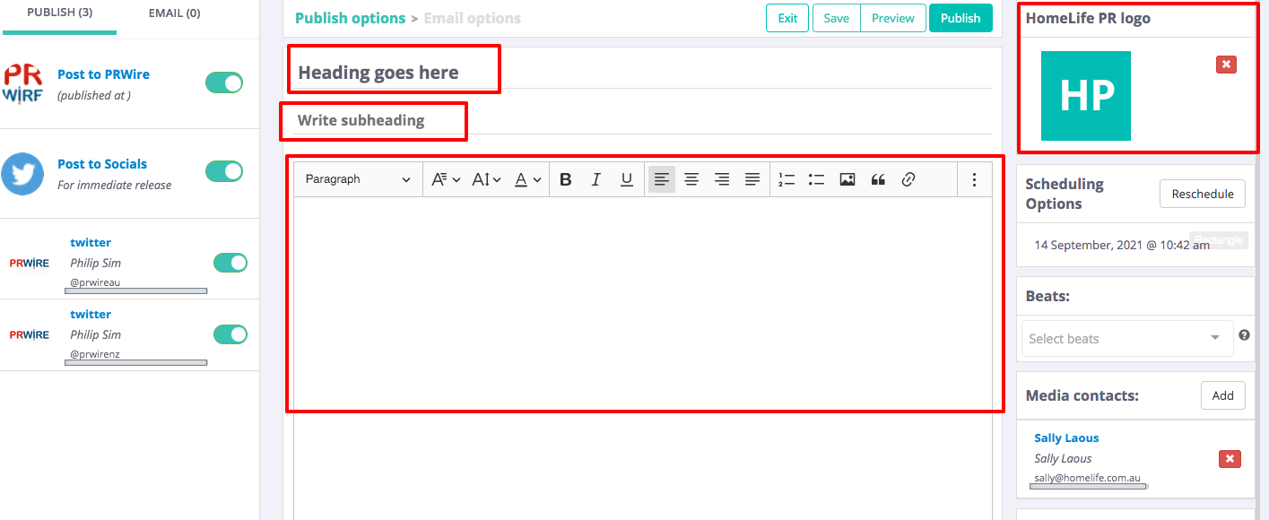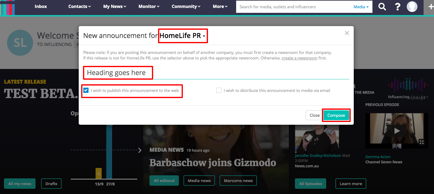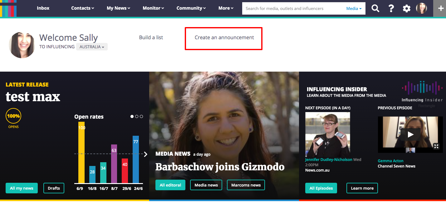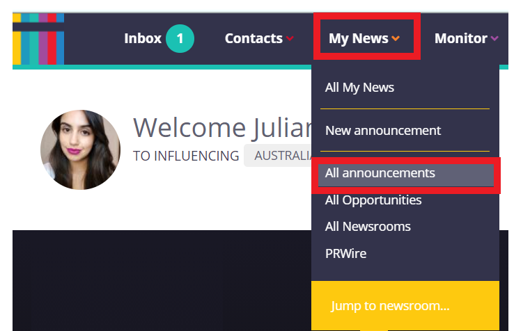 To create a new media release on Influencing and post that to our PRWire feed, please follow the steps below: