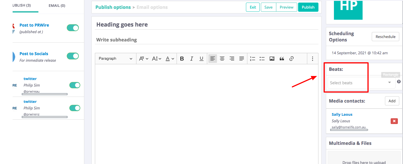 Select the 'Beats' that are related to the topics covered on your release (at least one beat must be selected) so your release can be categorised accordingly on our PRWire feed.