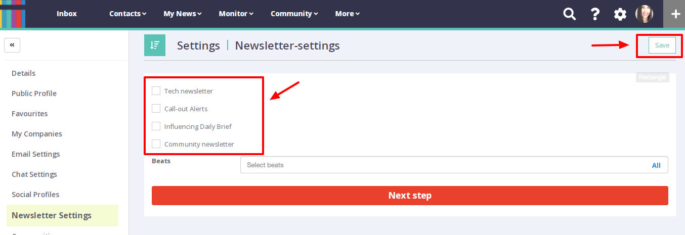3) Tick any of the newsletters you wish to subscribe to and click Save when finished!