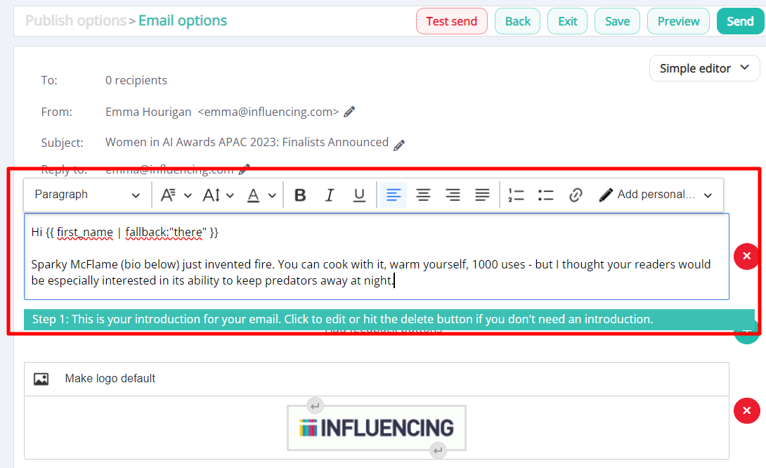 If you have any questions about email personalisation, please get in touch with our Customer Success Manager at support@influencing.com or simply click on the blue live chat button.